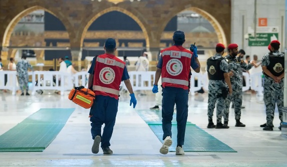 يُذكر أن هيئة الهلال الأحمر السعودي تعمل على توفير جميع الإمكانيات البشرية والإسعافية لخدمة المعتمرين والزوار لبيت الله الحرام، كما وفرت الهيئة في أماكن متفرقة داخل المسجد الحرام أكثر من 15 جهاز إزالة الرجفان البطيني AED (جهاز الصدمات القلبية)، وهو جهاز محمول يمكن استخدامه لعلاج حالات توقف القلب والتنفس.