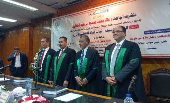 علاء الجعفرى يحصل على درجة الدكتوراة فى الرسالة المقدمة منه بعنوان الخبرة كوسيلة إثبات أمام القاضي الإداري دراسة مقارنة