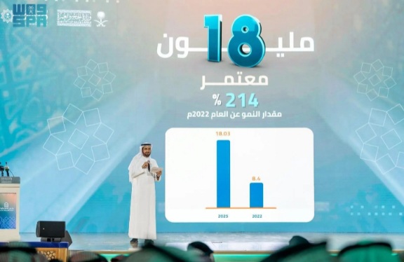 وبيَّن أن عدد المعتمرين القادمين من خارج المملكة هذا العام بلغ (18) مليون معتمر، بنسبة نموَّ تجاوزت (214%) مقارنة بالعامين 2022 و2025، منوهًا بالدعم والتمكين الذي توليه قيادة المملكة -أيدها الله- وعنايها القصوى لقطاع العمرة والزيارة، وللجهود التي تستهدف رعاية ضيوف الرحمن وخدمة قاصدي الحرمين الشريفين.
