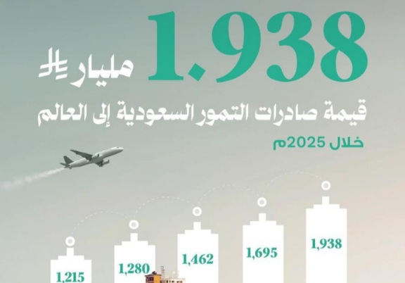 حقّقت المملكة العربية السعودية نموًّا قياسيًا في قيمة صادرات التمور خلال عام 2025م، بتسجيل ارتفاع بنسبة 14.3% مقارنةً بعام 2024م، و59.5% منذ عام 2021م، حيث بلغت قيمة الصادرات 1.938 مليار ريال؛ مما يؤكّد تطور قطاع النخيل والتمور في المملكة، وارتفاع جودة التمور السعودية وكفاءتها الإنتاجية، وتعزيز ريادتها وسيطرتها على الأسواق العالمية؛ بما يسهم في رفع مساهمة القطاع الزراعي بالناتج المحلي الإجمالي، ودعم الاقتصاد الوطني، وفقًا لمستهدفات رؤية المملكة 2030.